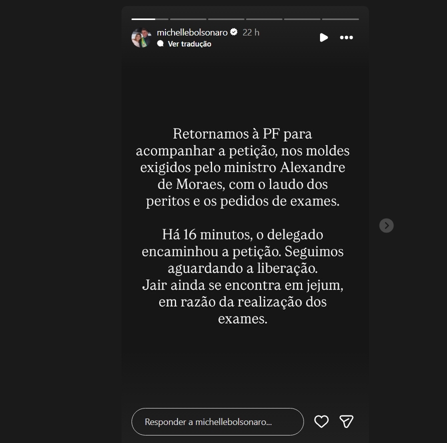 Em suas redes sociais, a ex-primeira-dama Michelle Bolsonaro (PL) comentou sobre o assunto.